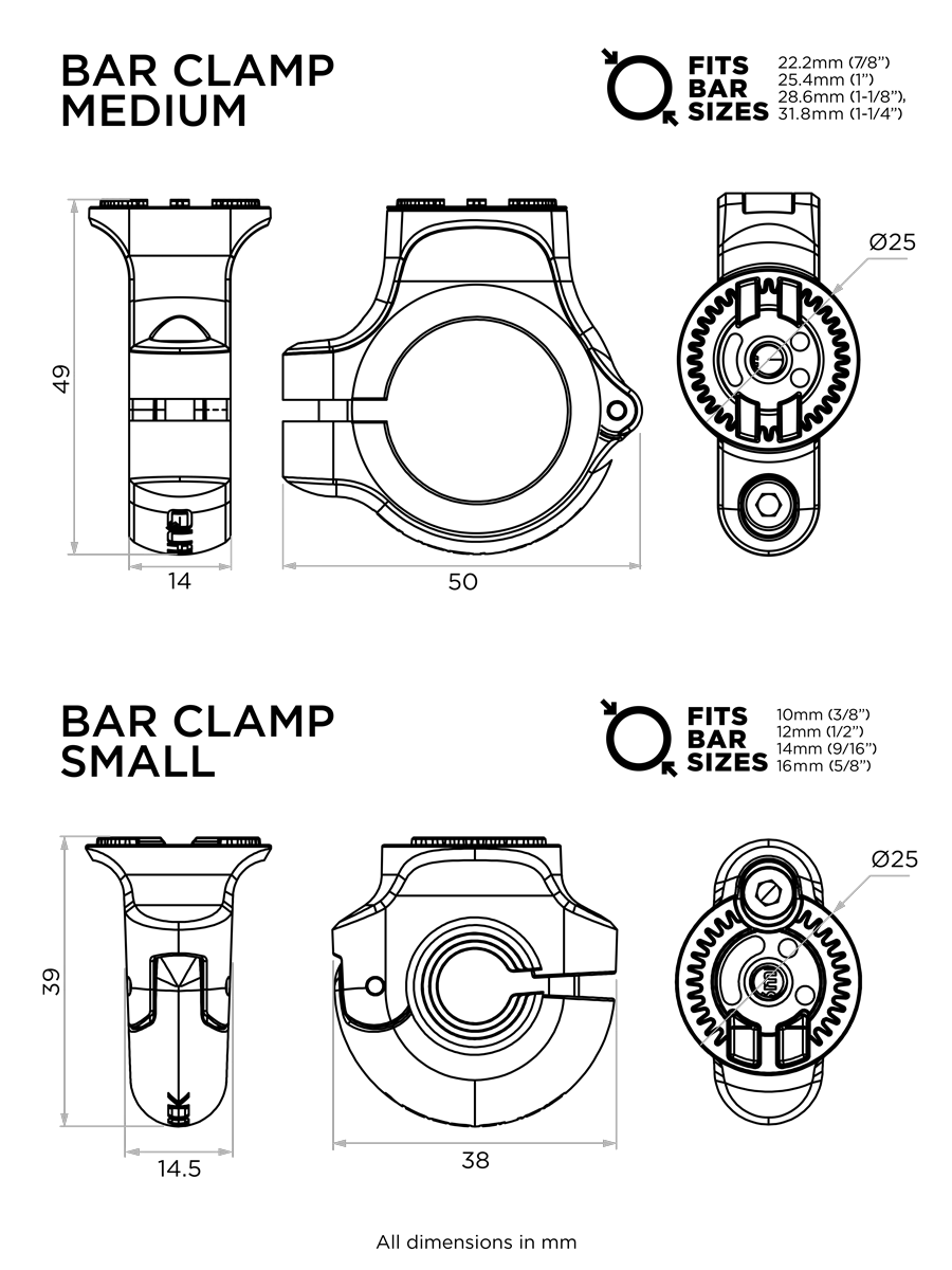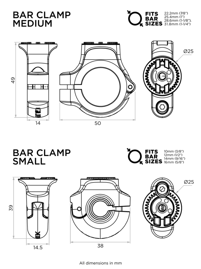 Odgovara prečnicima šipke 22 mm (7/8″), 25 mm (1″), 28 mm (1-1/8″) i 32 mm (1-1/4″)