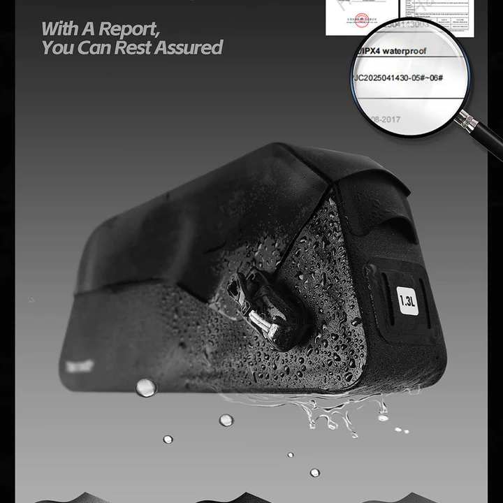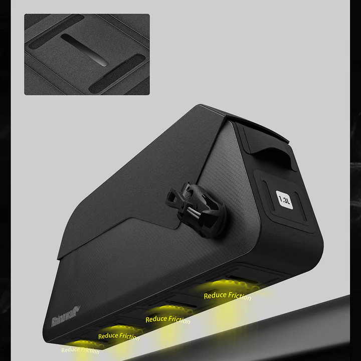 Rhinowalk Plateau Series X je premium torbica za bicikl koja se montira na gornju cev, potpuno je vodootporna i koristi magnetni sistem pričvršćivanja za brzu i sigurnu upotrebu. Dostupna je u tri veličine (0.6L, 1L i 1.3L), izrađena od izdržljivih materijala (420D najlon + 600D TPU), i namenjena je za vožnje po putu, gravel i bikepacking.