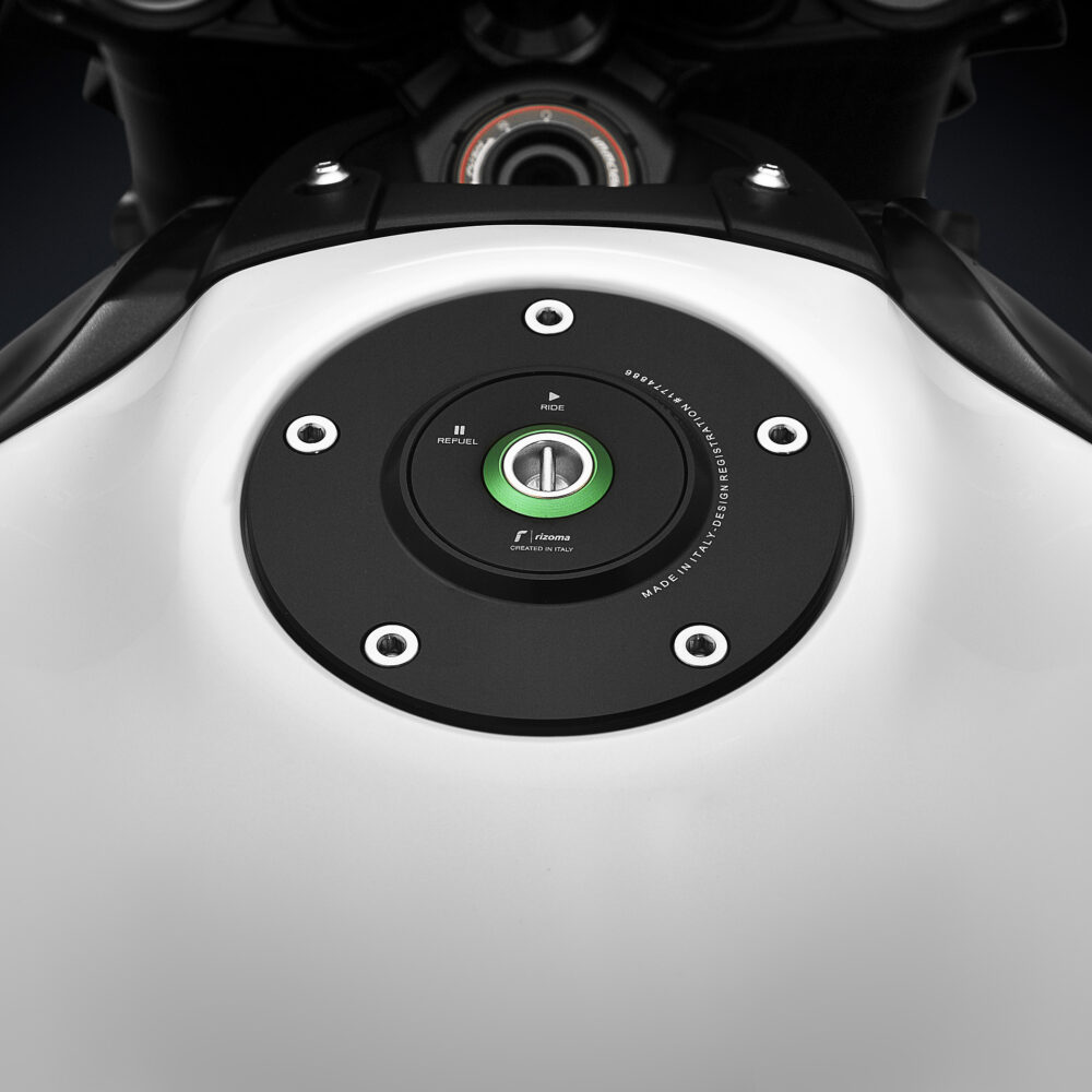 Rizoma poklopac rezervoara za gorivo u potpunosti je izrađen od aluminijuma obrađenog glodanjem i kombinuje dizajn, tehnologiju, visokokvalitetne materijale i sigurnost. Key Lock System smanjuje rizik od neovlašćenog otvaranja, a pritom zadržava jednostavnu montažu i upotrebu.